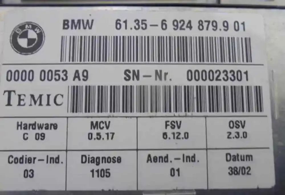 | Каталожный номер | 61356924879901, 00000053A9 |
